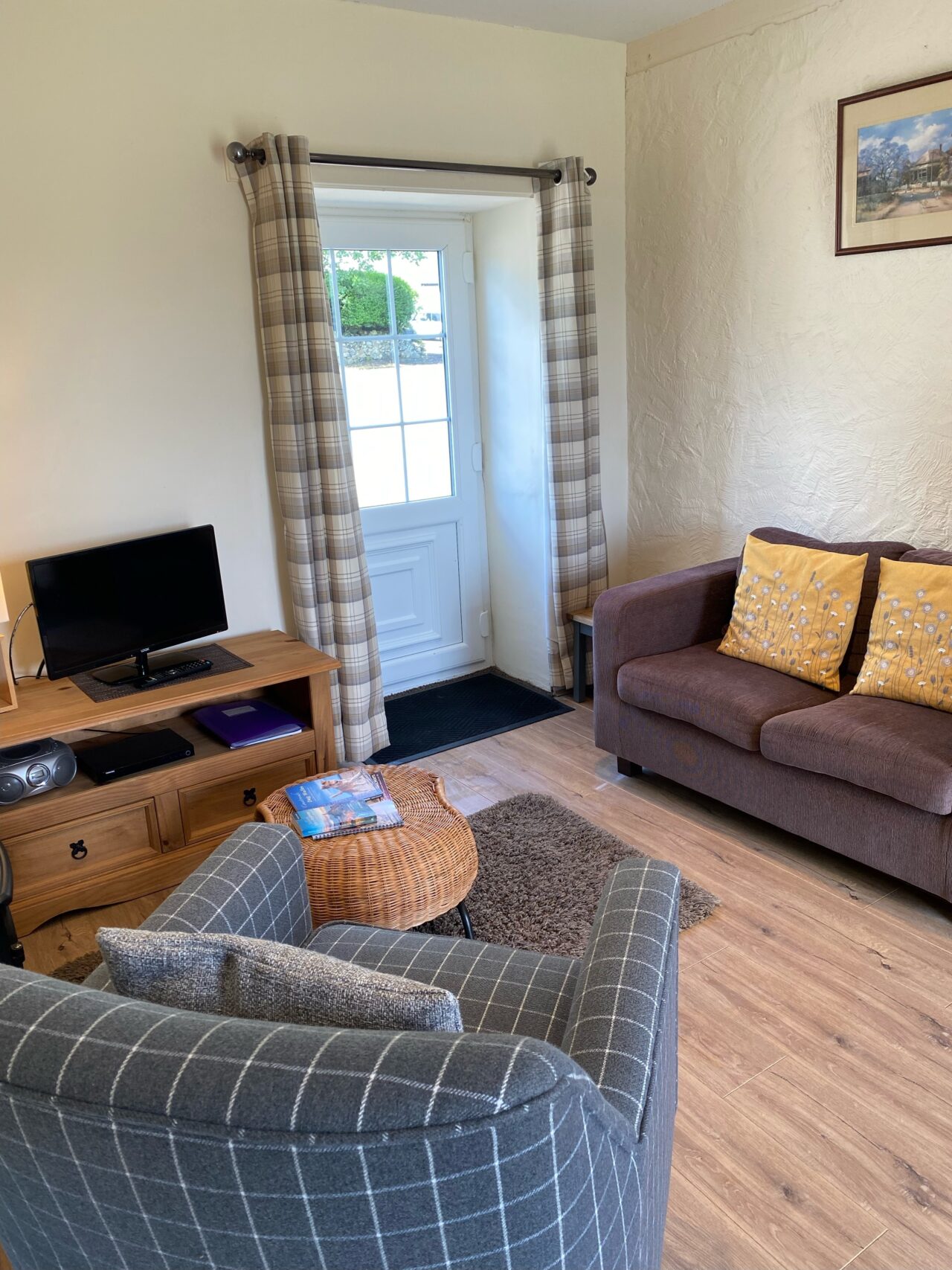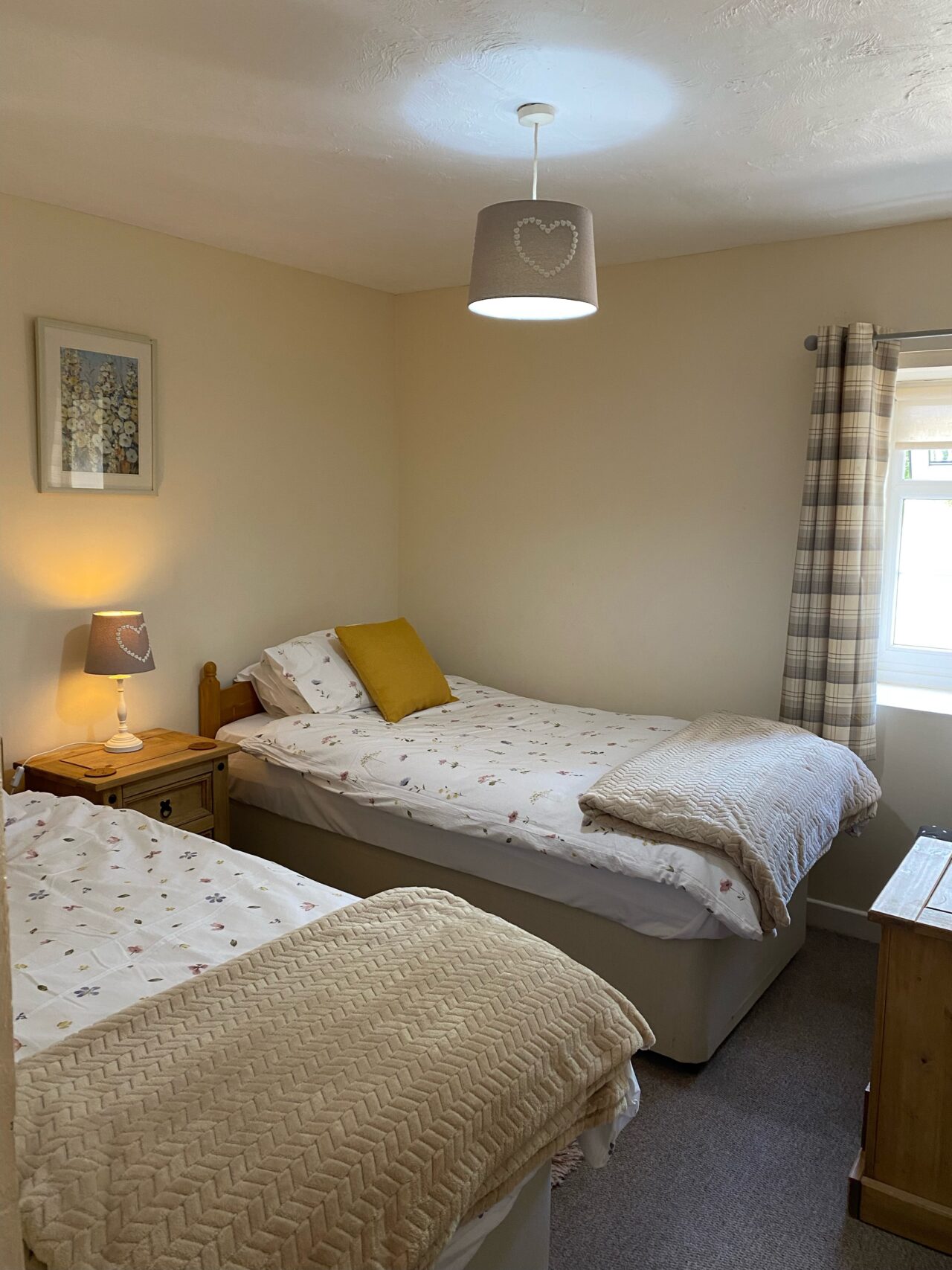 Mae’r bwthyn syml yma gyda 1 ystafell wely ddwbl ac 1 ystafell wely twin ac ystafell gawod ar wahân. Ystafell fwyta cegin cynllun agored gyda’r holl gyfleusterau coginio gan gynnwys oergell, popty/hob trydan a microdon. Ystafel fyw gyda theledu.