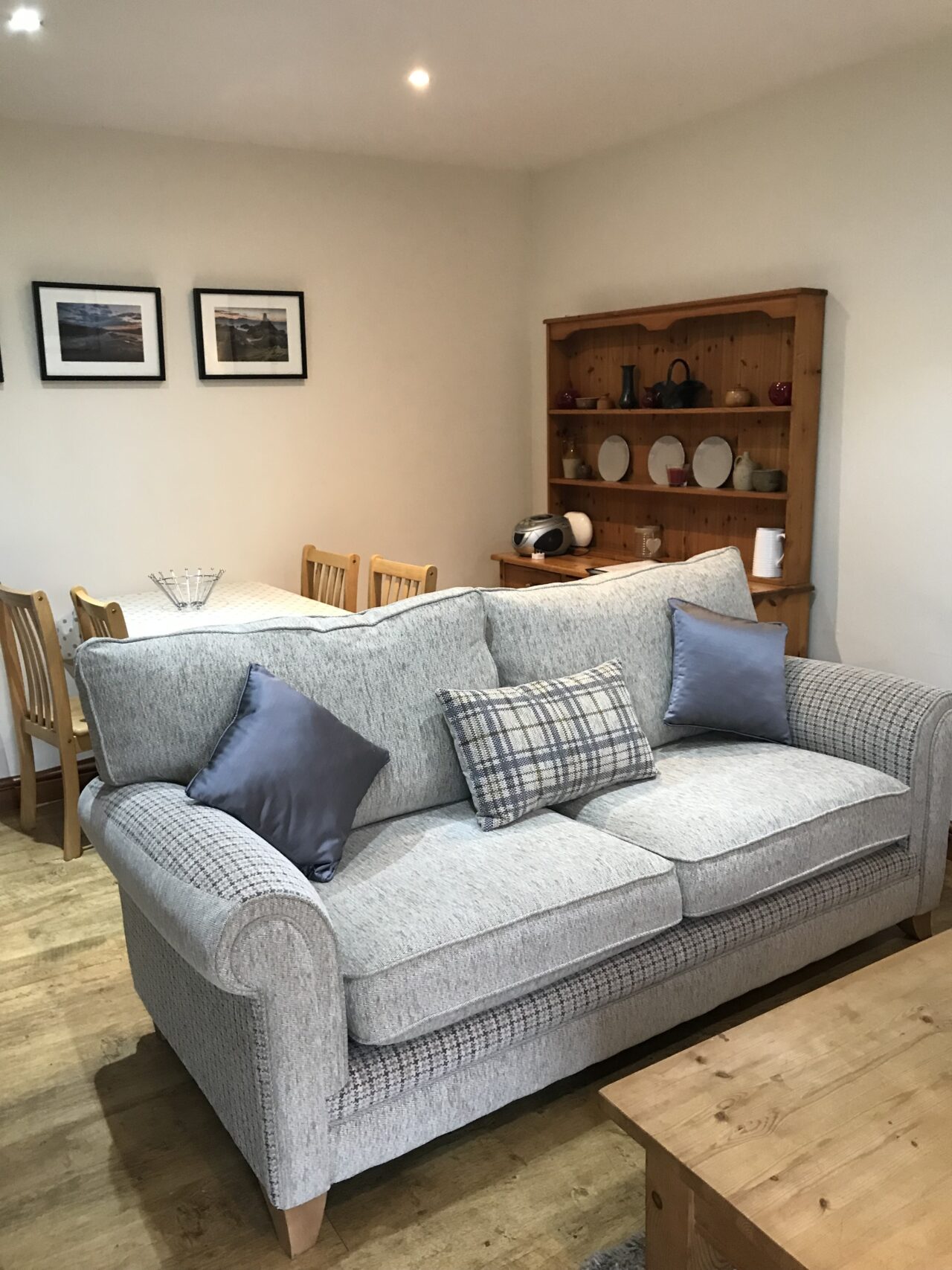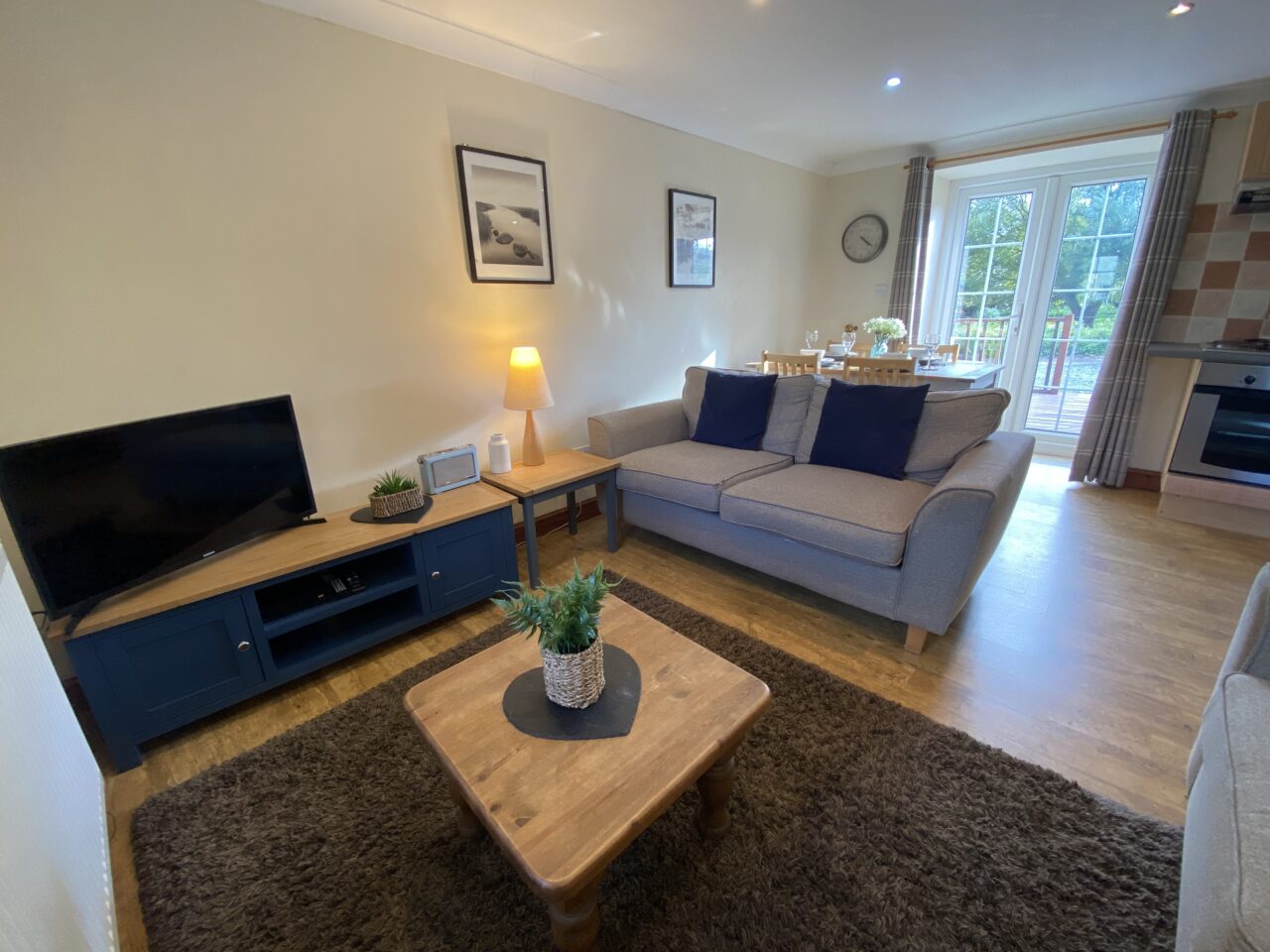 Ystafell wely ddwbl gydag ystafell gawod en suite, ystafell ymolchi deuluol gyda bath a chawod. Yn cynnwys ystafell wely twin ac ystafell wely gyda gwely bync. Cegin cynllun agored gyda popty a hob trydan, microdon ac oergell. Ystafell fyw gyda theledu a dvd. Ardal fwyta gyda drysau dwbl yn arwain allan i ddec gyda golygfeydd hyfryd tuag at fynyddoedd godidog Eryri.
